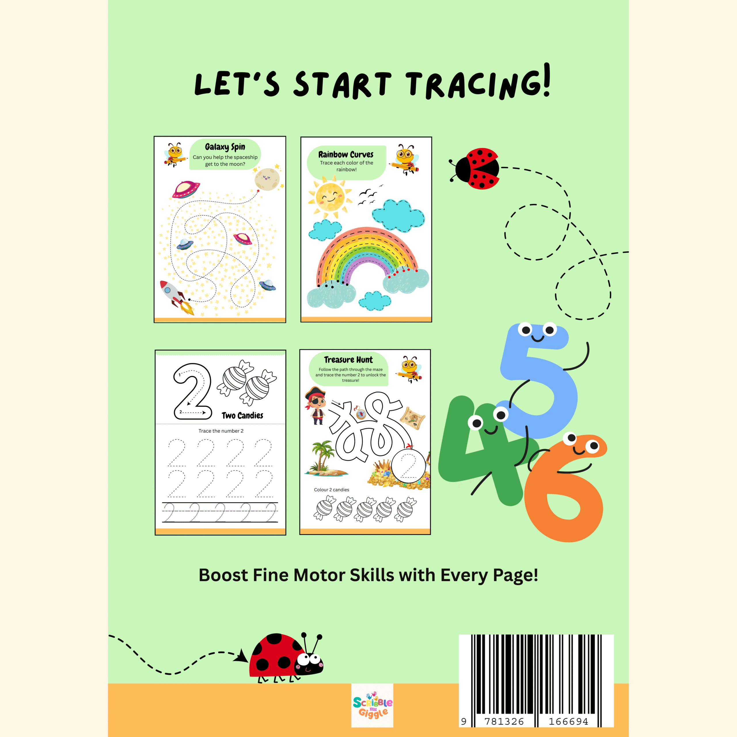 • Clear prompts like “Trace the pattern” and “Trace the number” to help young learners follow along independently