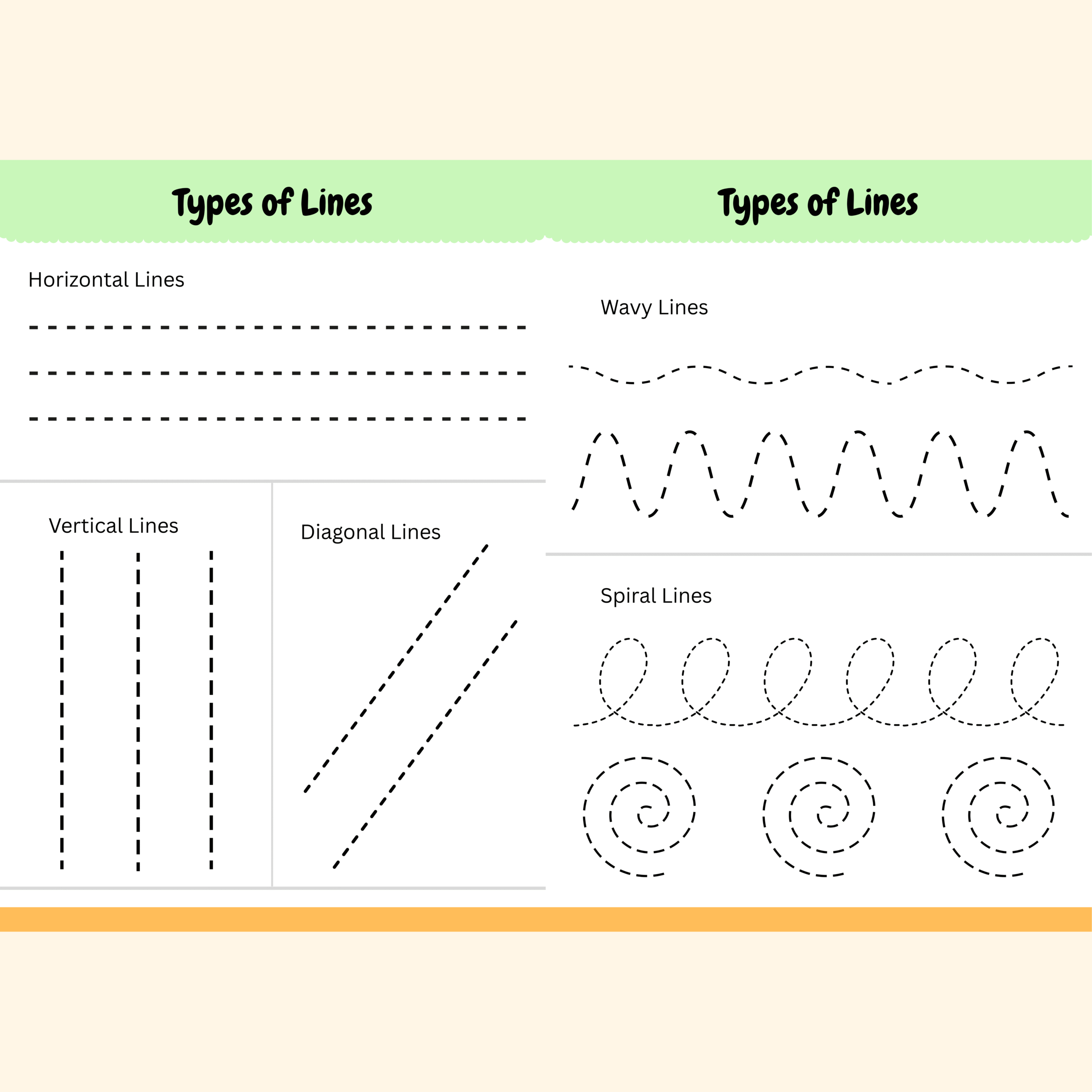 • Tracing Patterns such as straight lines, curves, zigzags, spirals, waves, and more pre-writing strokes