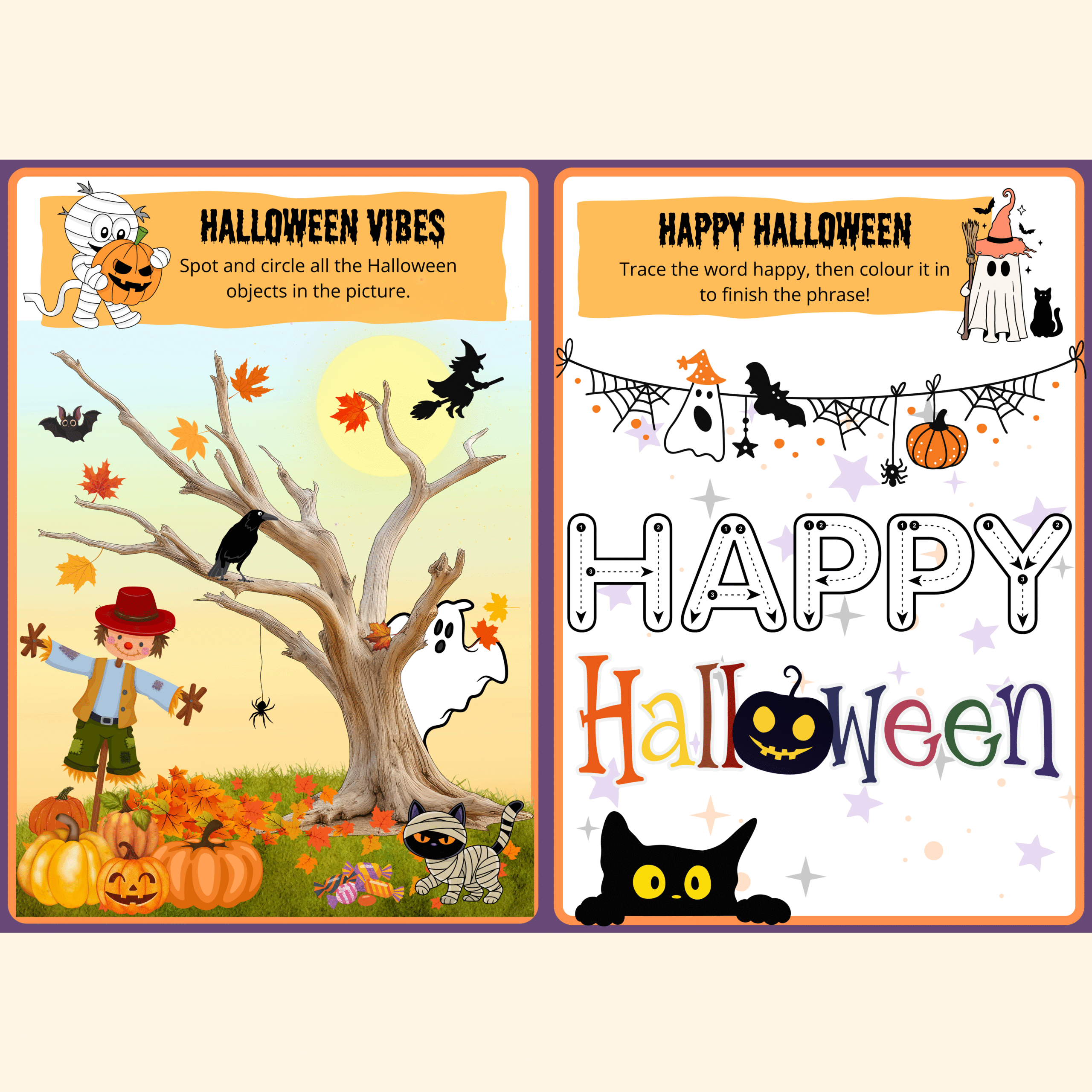 This activity book is packed with exciting educational activities designed to entertain and challenge kids while celebrating the Halloween spirit. Kids will enjoy hours of screen-free fun with a variety of colouring pages, puzzles, games, riddles, mazes, and cutandpaste crafts that build creativity, problem-solving, and fine motor skills. Each page offers a new adventure… from silly monsters and friendly ghosts to pumpkins, witches, and haunted houses!